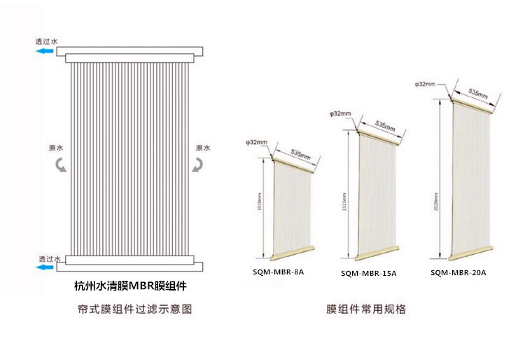 水清膜SQM系列MBR膜元件采用新一代耐污染型PVDF中空纖維膜,在保持高強度、高親水性和高通量的前提下,進一步提升膜的耐污染性能和抗衰減性能。以水清膜系列MBR膜元件為基礎的膜裝置結構緊湊,填充密度大,安裝使用方便。